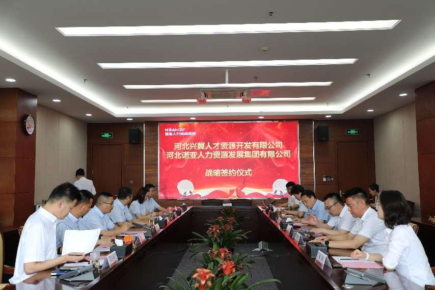 5月21日,河北招標(biāo)集團(tuán)興冀人才資源開發(fā)有限公司(簡稱興冀人才)與河北諾亞人力資源發(fā)展集團(tuán)有限公司(簡稱諾亞集團(tuán))在石家莊國際人才城舉行戰(zhàn)略簽約儀式,宣告兩大行業(yè)領(lǐng)軍企業(yè)正式聯(lián)袂,攜手探索人力資源服務(wù)創(chuàng)新模式,為業(yè)界帶來新鮮活力。興冀人才黨總支書記、董事長張廣輝,黨總支副書記、總經(jīng)理趙君鋒,諾亞集團(tuán)黨委書記、董事長王光軍,總經(jīng)理張?jiān)评椎裙餐鱿灱s儀式。
