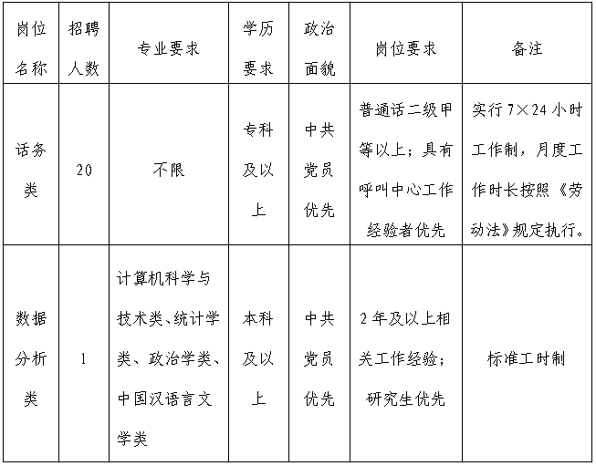 河北省12345政務服務便民熱線是省政府設(shè)立的非緊急類綜合公共服務平臺。根據(jù)工作需要,公開招聘工作人員21名?,F(xiàn)將具體事宜公告如下: