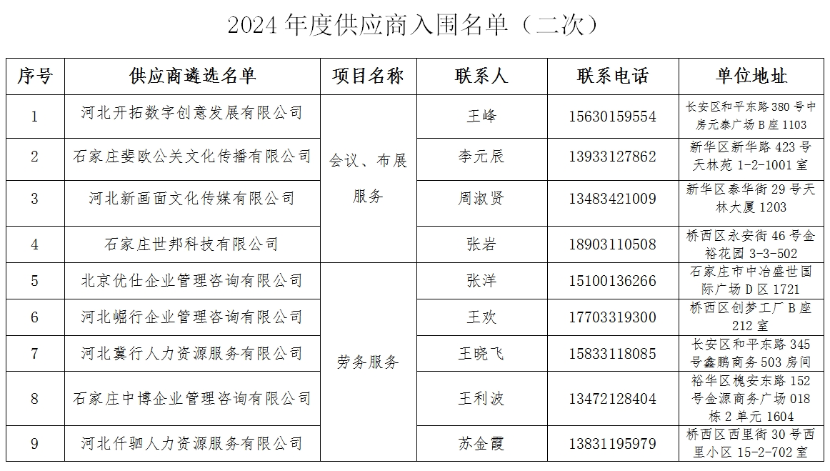 河北興冀人才資源開發(fā)有限公司供應(yīng)商入圍招選公告